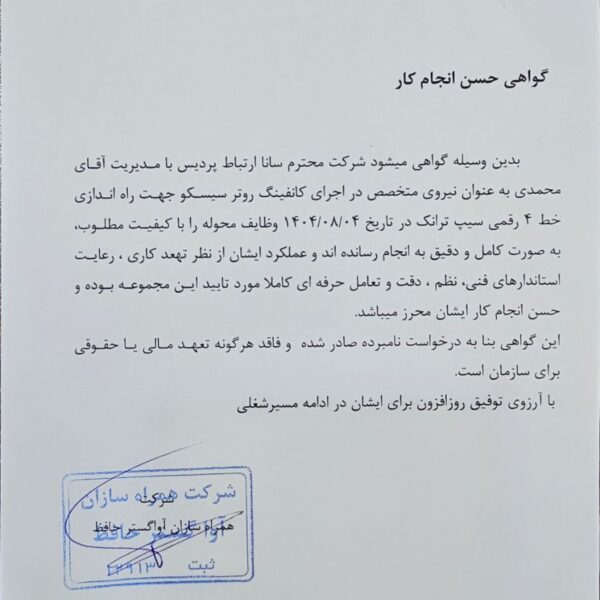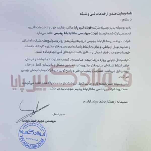 ۳۰- راهاندازی و پشتیبانی شبکه اداره پست شهریار (تمام توابع)